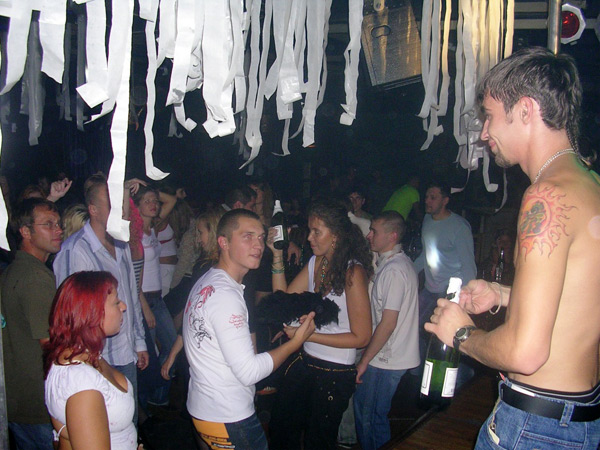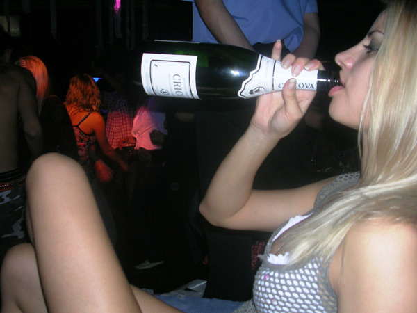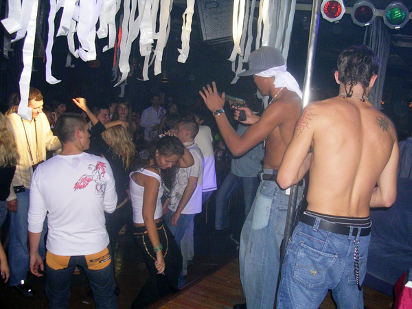 За вертушками зажигал главный гость ночи – король r’n’b и хип-хопа из Новосибирска, резидент клуба «Rock City» DJ Mos. Рядом с ним на сцене стоял мягкий диван, на котором расположились гангстеры, сутенеры и крутые сучки, которые покуривали кальян, потягивали шампанское и щедро делились этими прелестями жизни со всеми окружающими. Бутылки шампанского от «Interalco» пошли по рукам и скоро атмосфера общего счастья накрыла «Chaplin club» с головой.