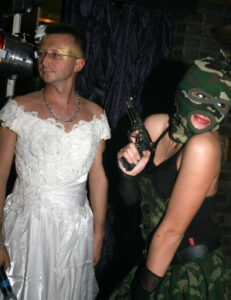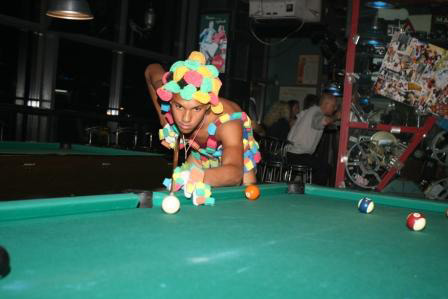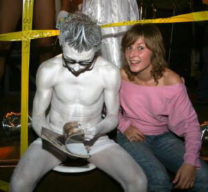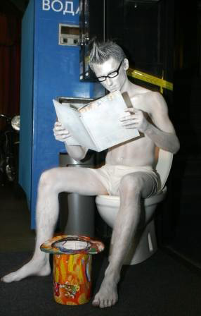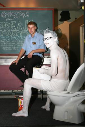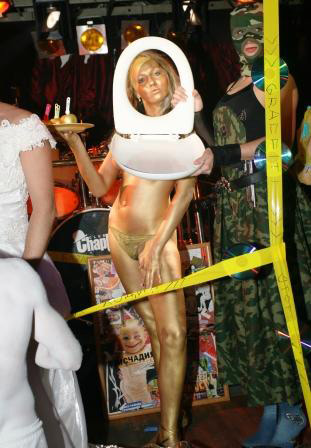 Одной из самых запоминающихся вечеринок сентября в «Чаплине» стала «Freak party» — сумасшедший и крышесносящий коктейль из музыки, декораций, костюмов, боди-арта, сюрпризов и карнавального веселья. Уже на входе нас ждал интеллигентый молодой человек на унитазе – весь в белом и с эротическим журналом в руках, он гордо восседал на своем «троне» всю ночь.