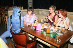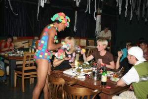 Отметившись у бара, — на танцпол, где прикольные фрики смешались с гостями клуба в одном ритме. Здесь тоже – знакомые лица, улыбки — все как и должно быть в «Чаплин клубе», живущем без будней, в сумасшедшем ритме непрерывного праздника.