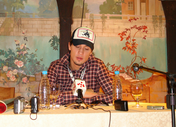 Наверное, это будет что-то более жесткое, решительное. О стиле можно говорить очень долго. Что такое стиль? Стиль — это почерк человека в данный момент, в данную секунду. Это настроение, это определенное поведение человека, которое отличает его от всех остальных. Мне кажется, что композиция «Never Let you Go» (в плане музыкального стиля) мне очень близка. Совсем недавно у меня вышел второй альбом, который назывался «На берегу неба». Он тоже был достаточно «прожитым», очень продуманным. А вообще, музыка меняется вместе со мной — меня никто никогда не заставлял петь что-то определенное. По мере своего развития и степени ощущения самого себя я лично выбираю себе музыку, участвую в написании текстов. При этом я считаю песню «На берегу неба» очень серьезной отправной точкой. Она была прожита мной. В тот период времени я именно так и думал. Записывая эту песню, я пытался передать все свои эмоции. Люди, наверное, это почувствовали… А вот на телефоне у меня сейчас установлен рингтон «Red Hot Chili Peppers» (телефон периодически звонит во время пресс-конференции — прим.) — Тоже, я считаю, неплохо (смеется)!