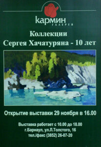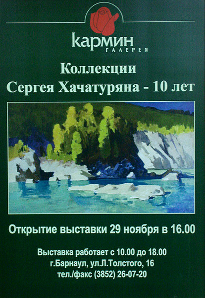 Картинная галерея «Кармин», расположенная на втором этаже по ул. Л. Толстого, 16, расширяет свои экспозиционные пощади, и будет занимать теперь два этажа трехэтажного здания. Картинная галерея «Кармин» была открыта 12 мая 2005 года на площади 330 кв.м. выставкой «Пейзаж – национальный жанр России – в коллекции Сергея Хачатуряна». В составе собрания ко времени открытия было 267 произведений алтайских художников.