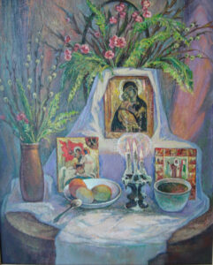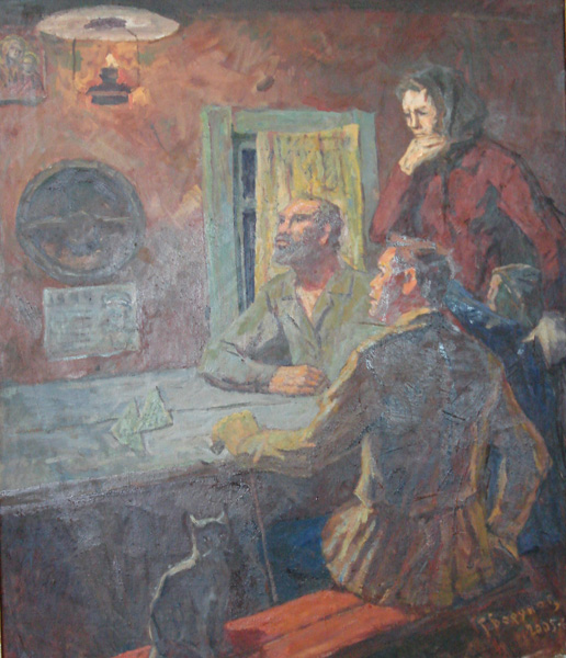В экспозиции также представлены работы различных жанров – пейзажи, натюрморты, тематические картины. Эта разность видов, стилей, жанров – отклик современных алтайских художников, их восприятие военных и послевоенных лет.