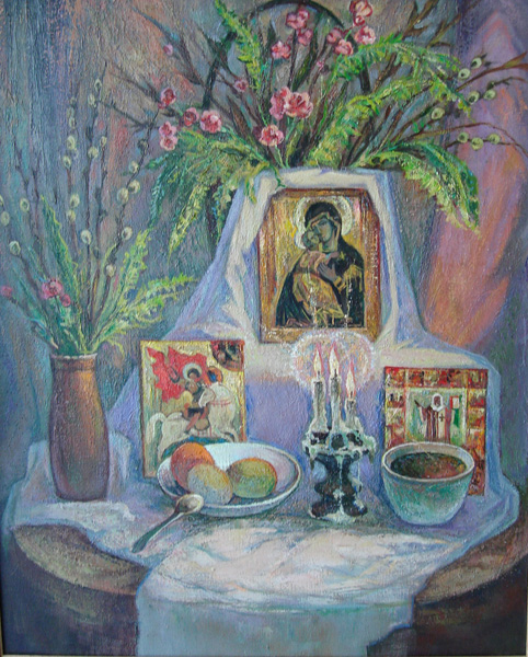 Войны без мира не бывает. Поэтому, несмотря на ярко выраженную военную тематику, на выставке много работ, посвященных также светлым дням победы и мирной жизни.