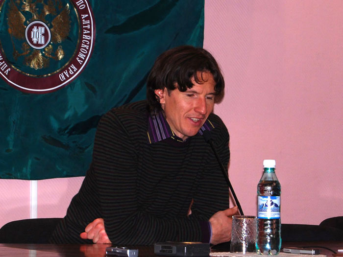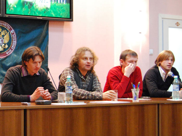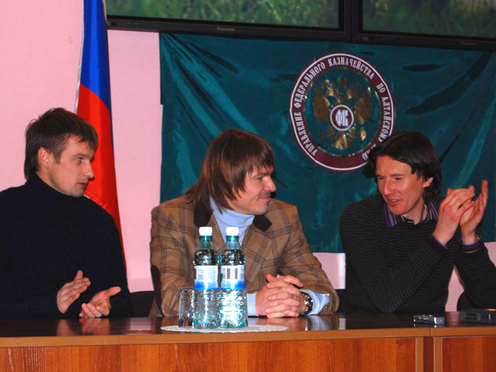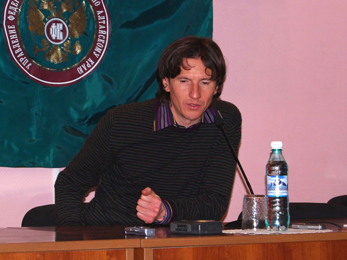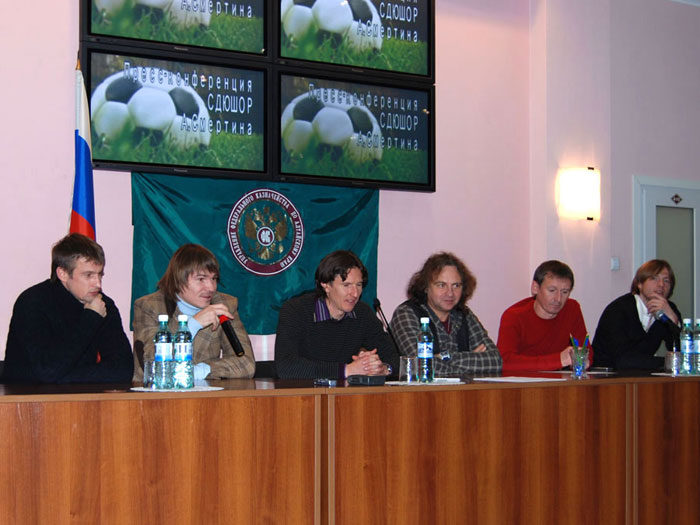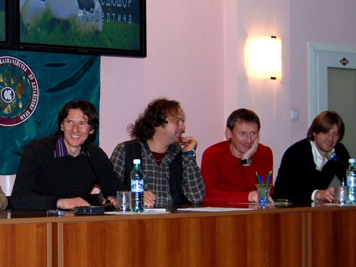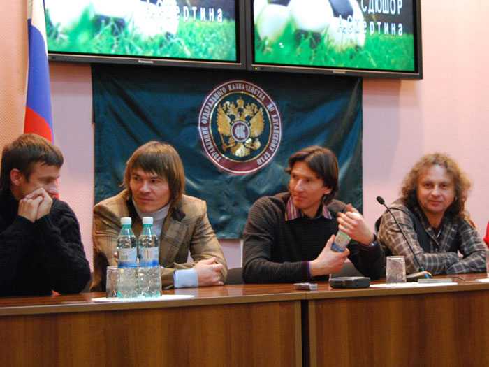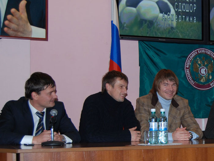 Алексей Смертин. Вы, наверное, знаете, сколько нас приехало. С нами сегодня: тренер футбольной команды «Динамо» (Москва) Евгений Смертин, являющийся одним из учредителей фонда, игрок премьер-лиги России футбольной команды «Москва» Сергей Семак, игрок премьер-лиги России футбольной команды «Сатурн» (Раменское) Дмитрий Лоськов, Андрей Каряка – футбольный клуб «Сатурн», наш общий друг и помощник Алексей Бодыков – представитель футбольного клуба «Торпедо». Так же, с нами музыкант Виктор Зинчук, впервые оказавшийся в Барнауле. Я очень благодарен им за то, что они присоединились к нам.