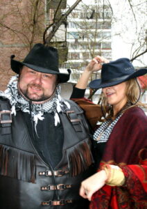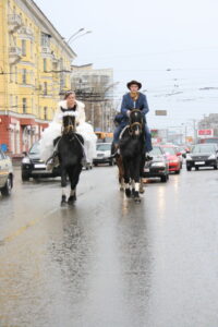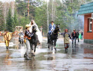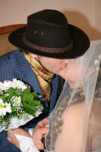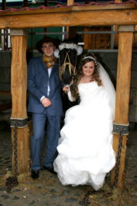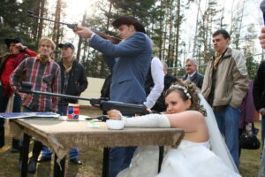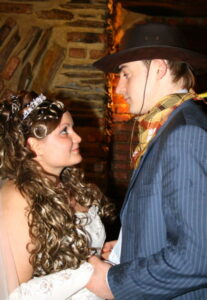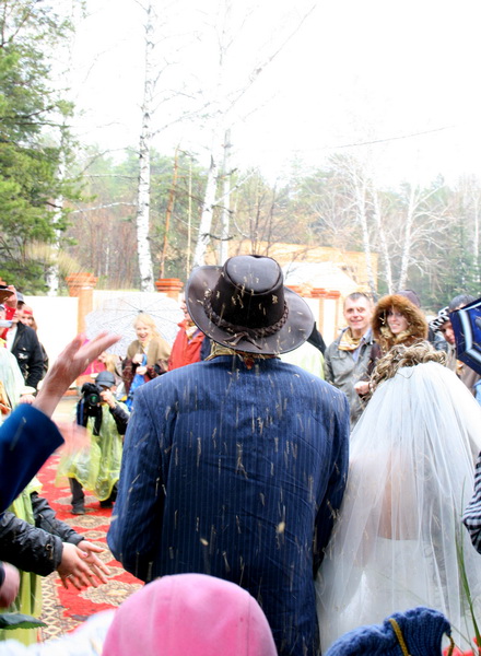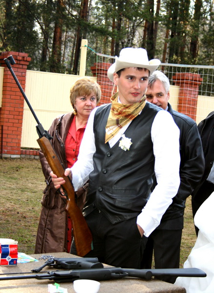 Елена и Андрей – очень неординарные люди. Ради отказа от банальных церемоний в течение двух недель учили ковбойские танцы и тренировались в езде верхом. Андрей, кроме того, прошёл инструктаж у альпинистов. Благодаря своим стараниям и желанию, третьего мая они из простых жителей города Барнаула превратились в крутого шерифа, который усадил за решетку не один десяток отъявленных головорезов, и в первую красавицу провинциального городка «Markov Town», расположенного где-то на юго-востоке Сибирской пустыни (предположим, что 600 лет назад было так).