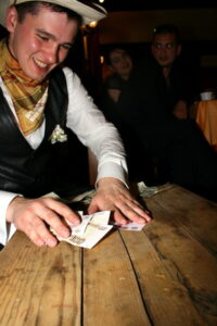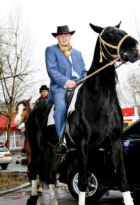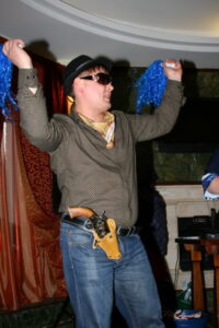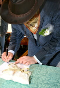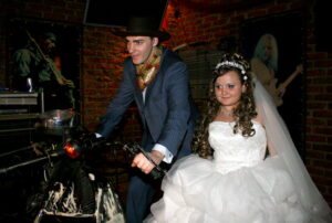 Жених и невеста, в ковбойских шляпах, с пистолетами, вместе с родственниками и замыкающей кортеж колонной байкеров, проследуют согласно проложенному по городу свадебному маршруту, от «Байк Бара» и до импровизированного «загородного ранчо» – базы отдыха «Золотая Подкова». Там их встретят ковбои, бандиты с большой дороги и индейцы во главе с вождем. Будет проведена потрясающая развлекательная программа, в которую войдут скачки, метание ковбойского сапога на дальность, заарканивание лошадей, тараканьи бега, конкурс на самые потертые джинсы и т.д.