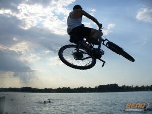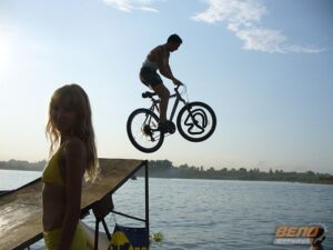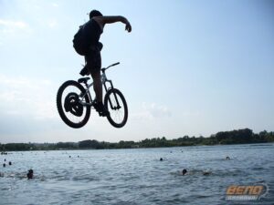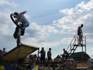 27 июля 2008 года, на пляже «Водный Мир» прошел открытый чемпионат города по Fun Jumping (прыжки в воду на велосипеде с трамплина). Организаторами соревнований выступили Творческое Объединение «Русский Алтай» и Алтайское краевое общественное движение «ВелоБарнаул». Десять барнаульских велосипедистов соревновались в дальности прыжка с трамплина, и выбирали лучший трюк.