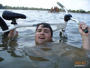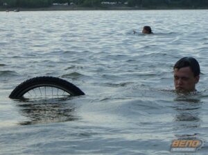 Прыгающие в воду велосипедисты собрали немало зрителей, которые с замиранием сердца следили за красивыми полетами. Десять товарищей приехали поддержать около двадцати велосипедистов-болельщиков, некоторые из которых, включая девчонок, в то время когда организаторы подписывали дипломы, пару раз так же прыгнули в воду с трамплина на велосипеде. В ходе соревнований все участники получили небольшие травмы – ушибы и порезы, но никто из них особо на это не обращал внимания!