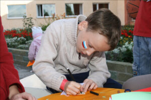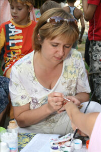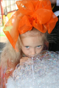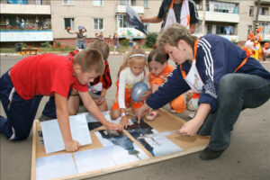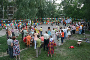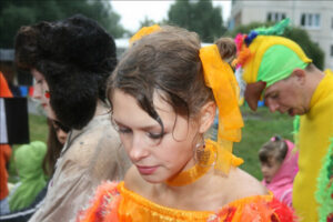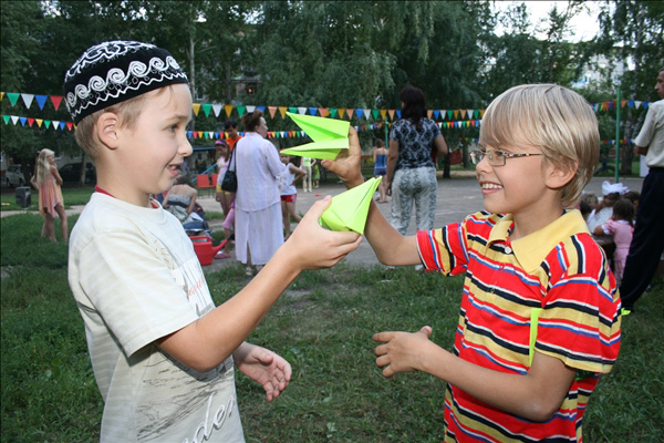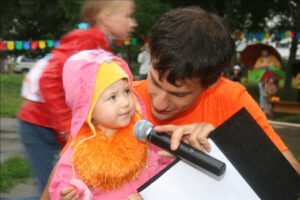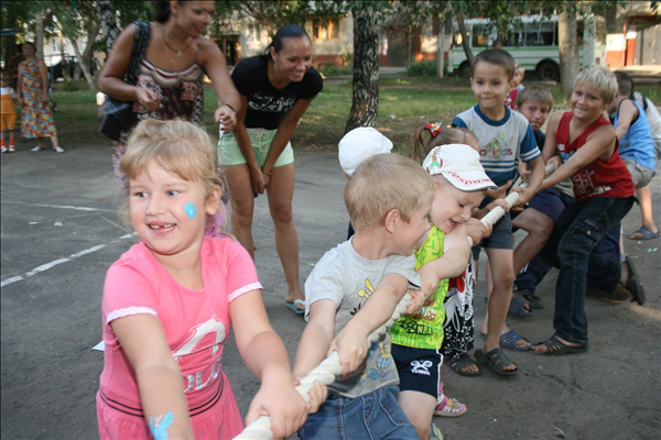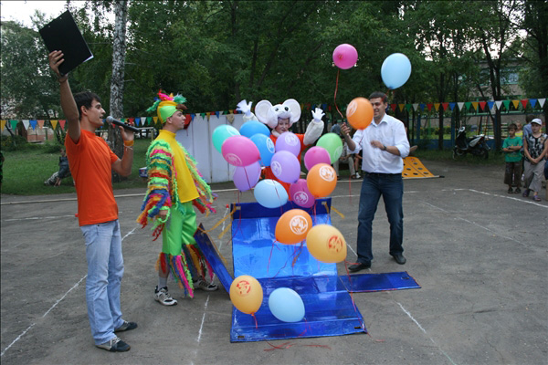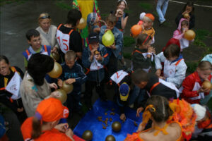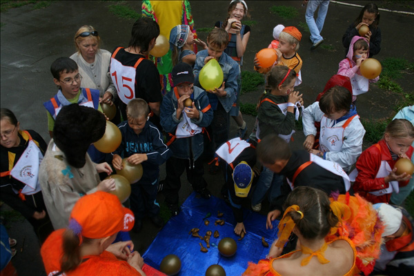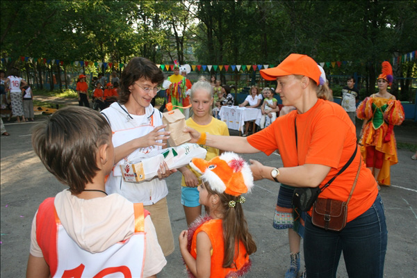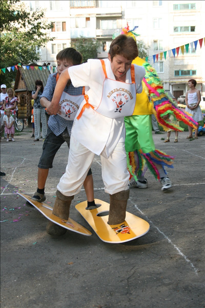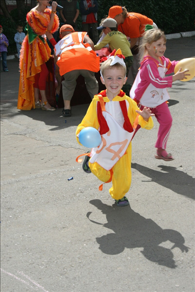 Подобно цирку-шапито, площадка с играми, конкурсами, творческими мастерскими, боди-артом и волшебными персонажами перемещалась из одного двора в другой. Три дня – четыре площадки. Участники карнавала сражались на семейных турнирах, дружно перетягивали канат, делали бумажных зверюшек, играли в жмурки, рисовали на асфальте. Ну, и, конечно же, получали подарки. В рамках праздника также был объявлен конкурс на самый апельсиновый костюм.