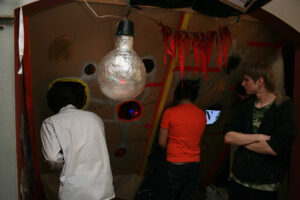 26 апреля 2010 года в павильоне современного искусства «Открытое небо » открылась выставка-инсталляция «В лампочке – ужас пола» творческой группы «Post П».