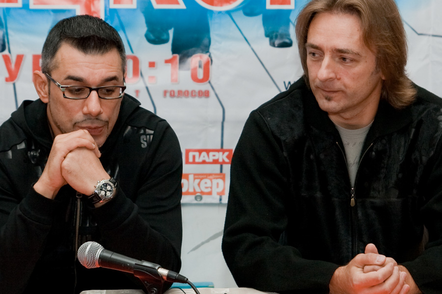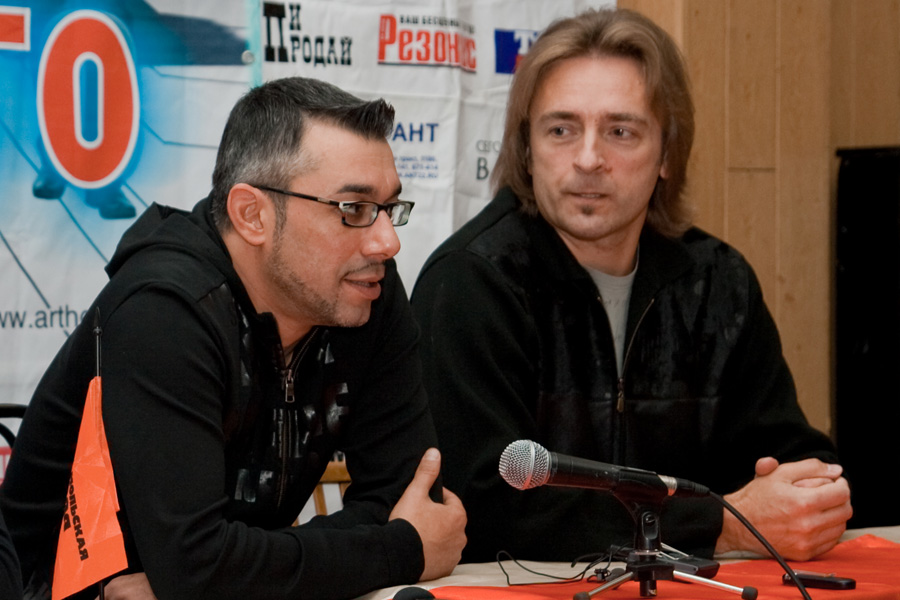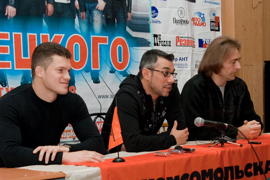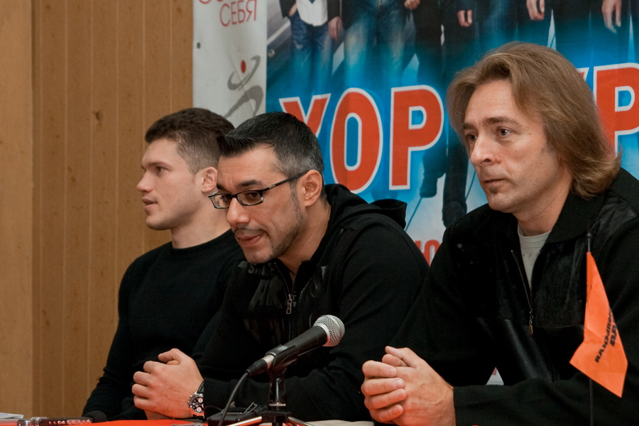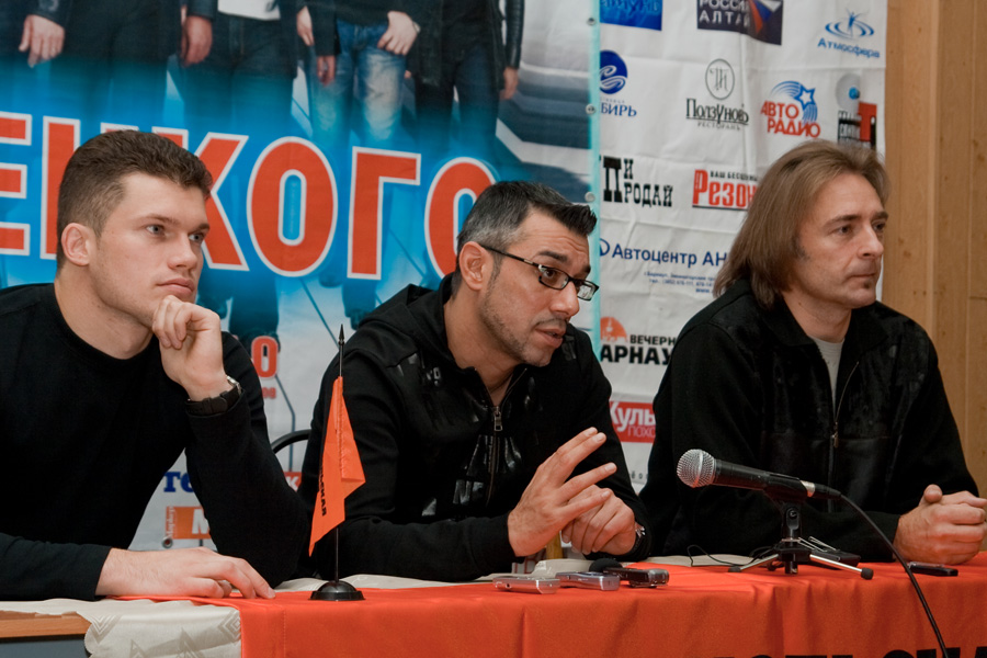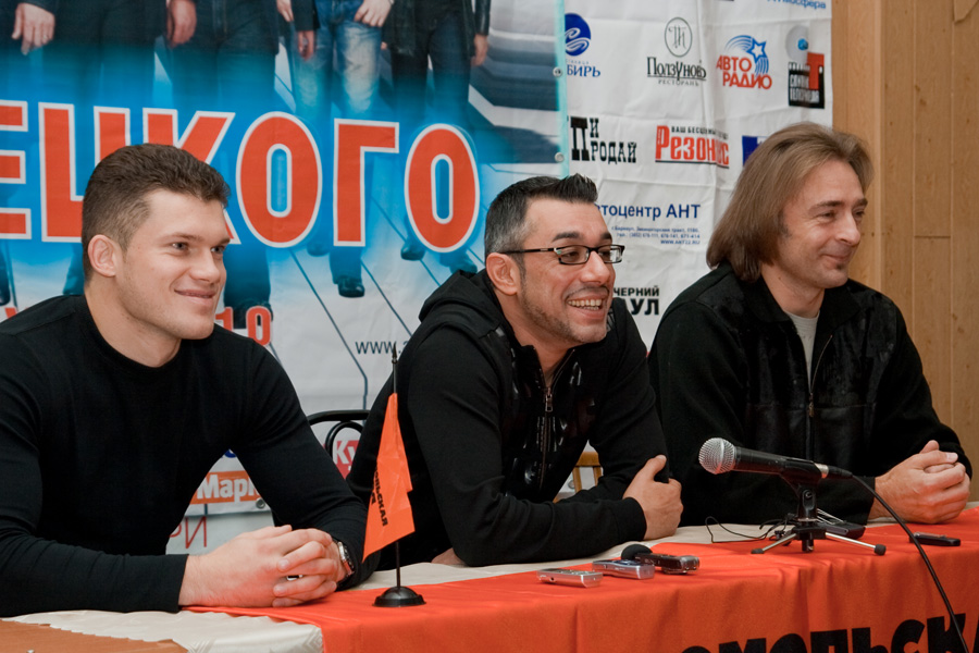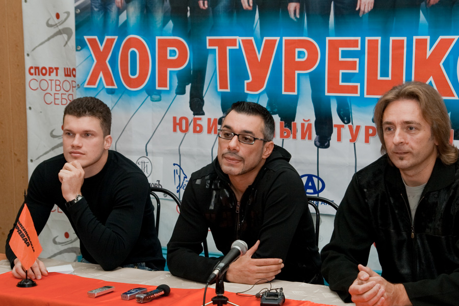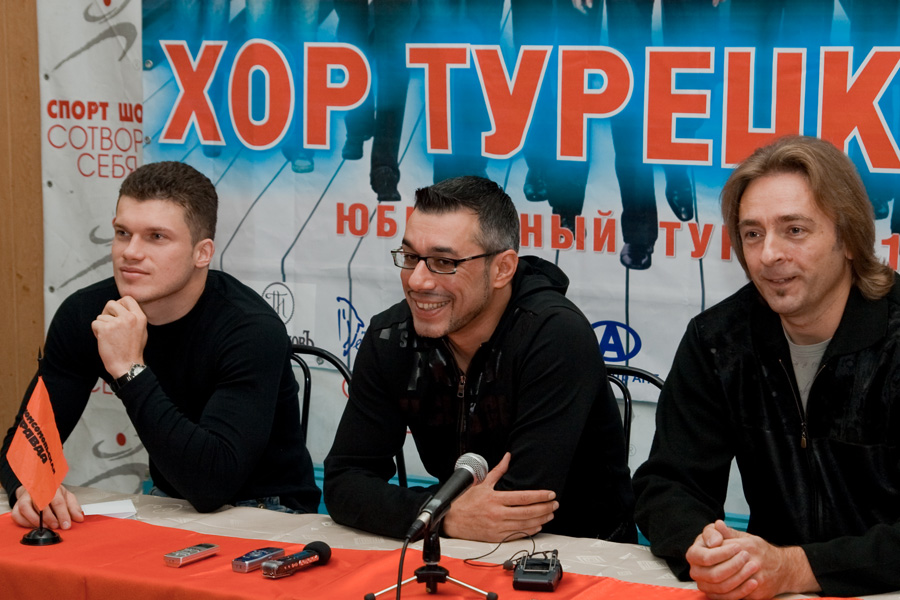 На пресс-конференции «Хора Турецкого» присутствовали: Олег Бляхорчук, Евгений Кульмис и Вячеслав Фреш.