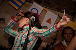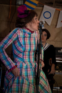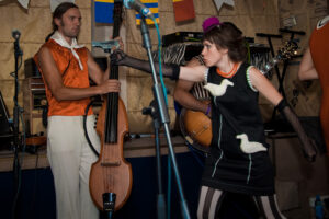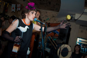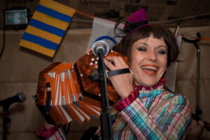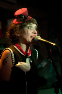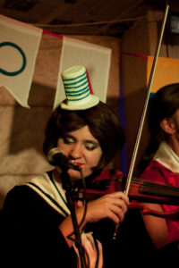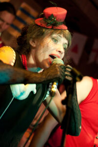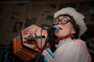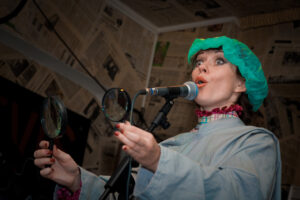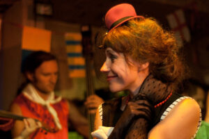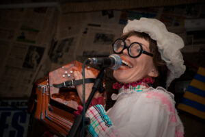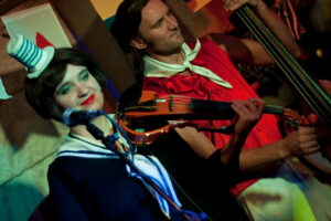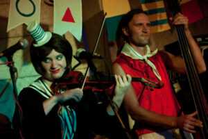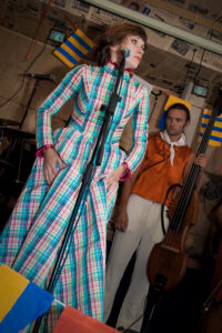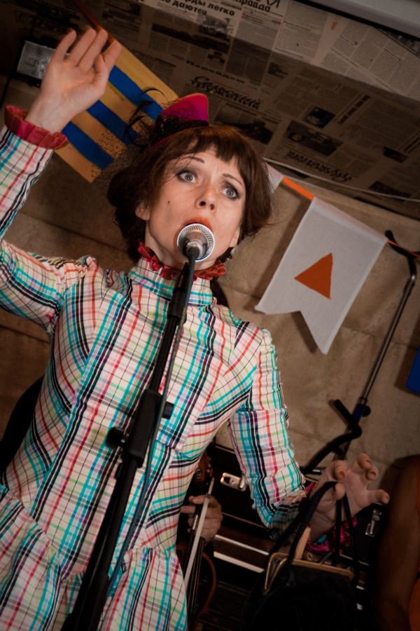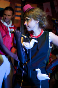 В репертуаре – песни на русском и французском языке, ироничные, парадоксальные, жизнеутверждающие, с элементами буффонады, театра кукол и кабаре.