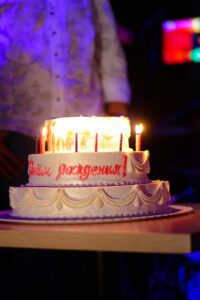 В свой День рождения коллектив «Русского радио» решил отступить от привычных правил и с удовольствием не только принимал, но и дарил пригласительные билеты в боулинг, суши-бар, пригласительные билеты на концерт Стаса Михайлова и Филиппа Киркорова. Кульминационным моментом стал розыгрыш билета на XV, юбилейную, церемонию вручения народной музыкальной премии «Золотой Граммофон», которая состоится 4 декабря 2010 года в Государственном Кремлевском Дворце. Счастливыми обладателями пригласительных билетов стали Соболевы Владимир и Светлана. А фирменные сувениры от «Русского радио» получили абсолютно все гости, побывавшие на Дне рождении! Во время церемонии вручения призов гости благодарили за выгодное сотрудничество, за отзывчивость и креативность, присущие «Русскому радио». Закончился праздник грандиозным салютом!