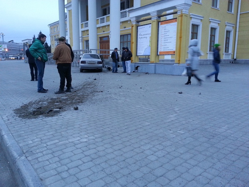 По данным очевидцев ДТП в соцсети «ВКонтакте», Toyota поворачивала со стороны проспекта Строителей на Ленинский проспект на желтый сигнал светофора. При маневре ей удалось избежать столкновения с другим автомобилем, однако вместо того, чтобы остановиться или продолжить движение по своей полосе, иномарка начала разгоняться. Скорее всего, женщина за рулем перепутала педали «газ» и «тормоз», из-за чего ее Toyota проехалась по газону на площади Октября, где у машины лопнули передние колеса. Не сбавляя скорость и вновь чудом избежав столкновения с другими авто, машина перемахнула через бордюр у здания театра, повредив рекламный щит и столкнув с места бетонную урну. Остановила автомобиль только стена здания.