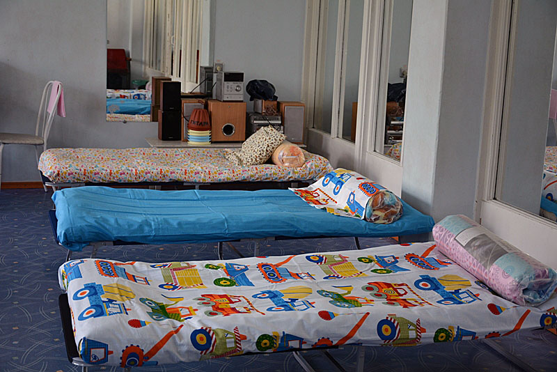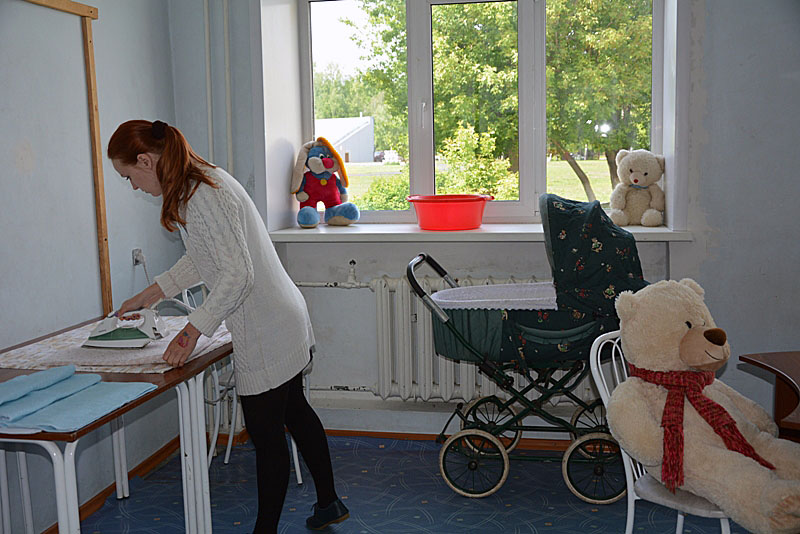 Также на первом этаже подготовлена комната матери и ребенка, в ней одновременно могут находиться четыре женщины с детьми (в случае необходимости больше). Здесь есть кровати для мам и для малышей, предусмотрены обогреватели, установлены электрические чайники, микроволновые печи для подогрева детского питания, кулер с бутилированной питьевой водой.