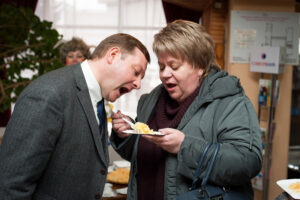 На сцене сначала вручались подарки и награды на все вкусы: за активность в межтеатральном спорте, за заслуги перед театром и прочую активную деятельность. В общем, награждали и вручали много и многим. И конечно же сам «Капустник». Актеры, пустились «во все тяжкие», смешно было до слез. А в финале состоялся конкурс самых настоящих румяных капустных пирогов, которые потом с аппетитом были съедены театралами.