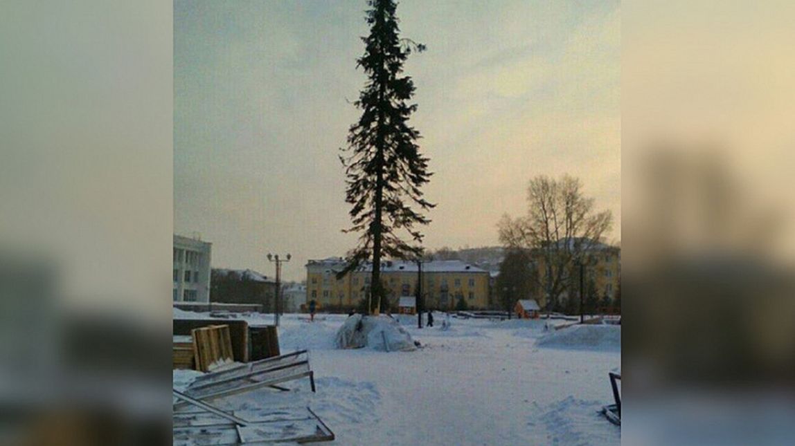 Фото лысой, куцой, но в общем-то ни в чём не виноватой ёлочки, быстро распространилось по социальным сетям. Пользователи сети одно не поймут: если уж власти привезли настоящую срубленную живую ель из леса, то почему тогда не выбрали более красивое дерево.