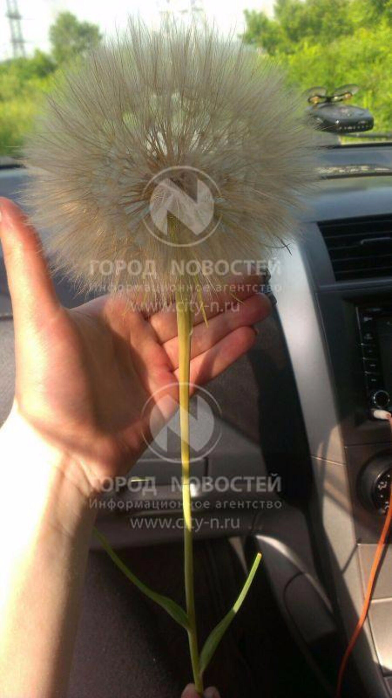 Новокузнечанин выложил в социальную сеть "ВКонтакте" фотографии огромного растения, похожего на одуванчик. Необычную находку мужчина увидел во время возвращения с рыбалки.
