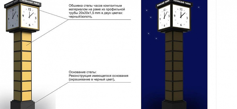 В Ленинском районе приступили к реконструкции часов на пересечении улиц Георгия Исакова и Малахова. Рабочие выполняют каркасную обшивку опоры, подготавливают основание. После декорирования стелы будут монтировать часовой механизм.