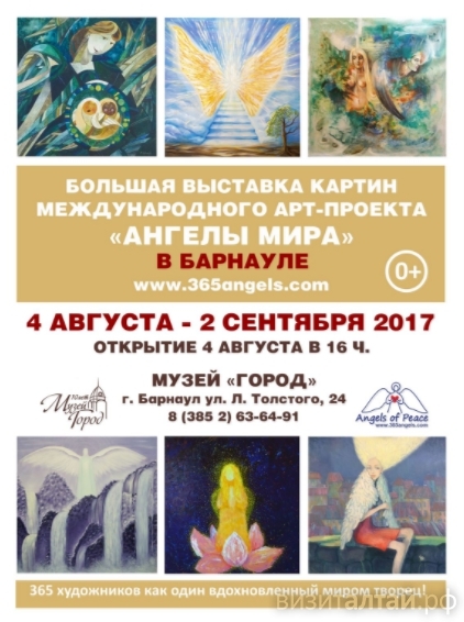В Барнауле в музее «Город» открылась выставка картин из коллекции Международного арт-проекта «Ангелы мира». Более 90 работ художников из России, США, Финляндии, Канады, Великобритании, Македонии, Хорватии, Республики Сербской, Беларуси, Болгарии, Казахстана, Украины на тему «Ангел-Хранитель».