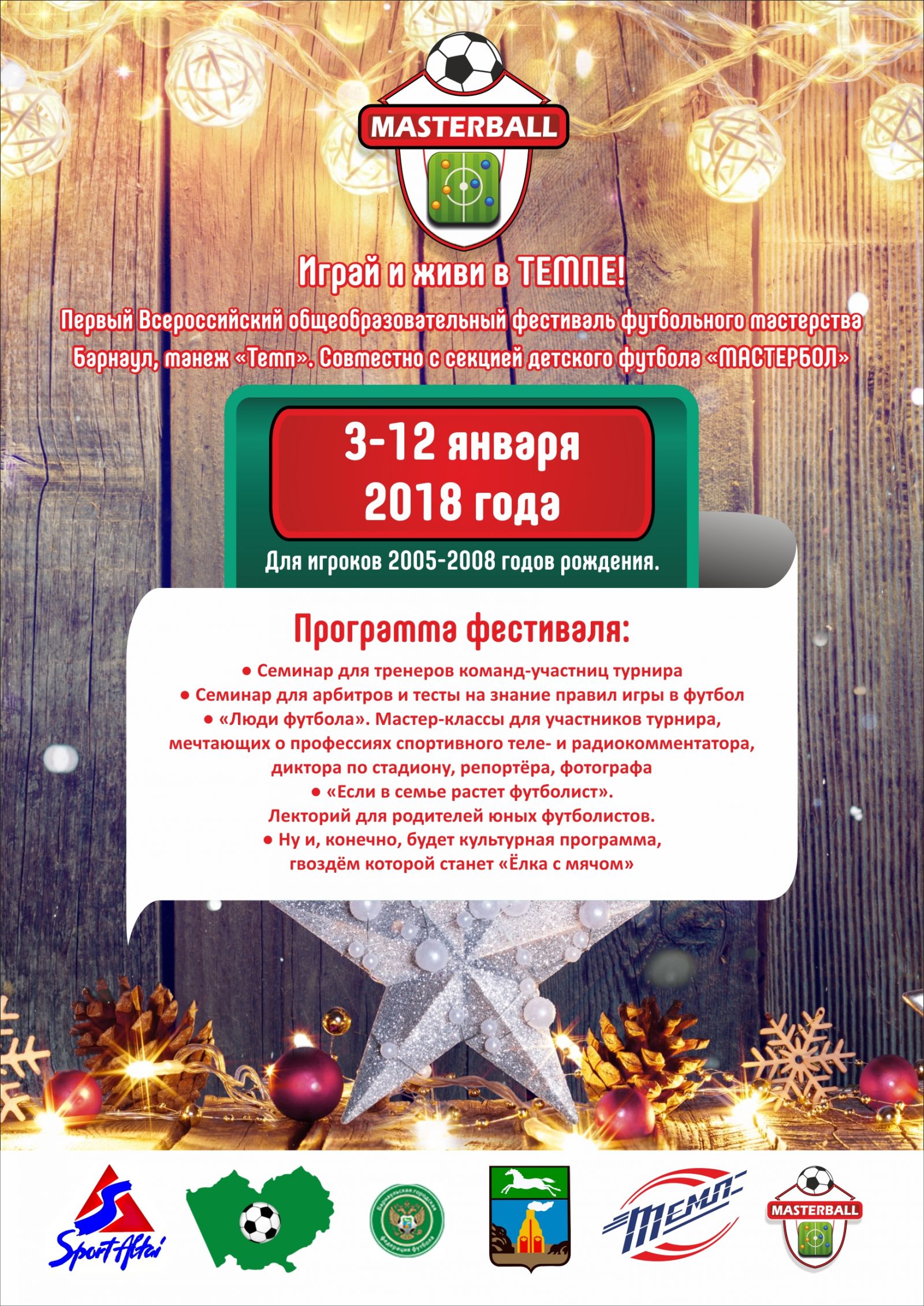 Его главными событиями будут турниры среди детских команд четырёх возрастов. На искусственную траву футбольного манежа «Темп» выйдут мальчишки 2005, 2006 годов рождения (с 3 по 7 января) и 2007, 2008 годов рождения (с 9 по 12 января). Вдобавок с 3 по 7 января пройдет турнир среди девочек 2005 – 2008 годов рождения. В соревнованиях сыграют российские команды из Барнаула, Бийска, Горно-Алтайска, Новосибирска, Томска, Красноярска, Иркутска, Новокузнецка, Кемерова, Абакана, Петропавловска-Камчатского, а также казахстанские – из Усть-Каменогорска, Павлодара, Алматы, Экибастуза.