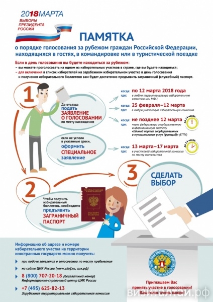 Туристы узнают о порядке голосования за рубежом граждан Российской Федерации, находящихся в гостях, в командировке или в туристической поездке, и о том, что делать избирателям, которые в день голосования на выборах Президента Российской Федерации планируют находиться в пути.