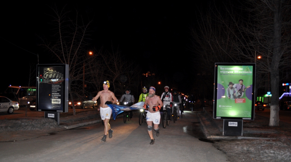 В это же время на центральном проспекте Барнаула прошел велопробег «Велосветлячки», организованный комитетом по физической культуре и спорту города Барнаула. Более 30 велосипедистов, оборудовав свои велосипеды велофонарями и светодиодной подсветкой стартовали в 20:30 от ул.Димитрова до ул.Никитина, в обратном направлении колонна двигалась до отметки «Нулевой километр». В акции приняли участие члены Федерации закаливания и спортивного зимнего плавания «Белые медведи», которые также совершили пробег с велосипедистами по «аллее студентов».