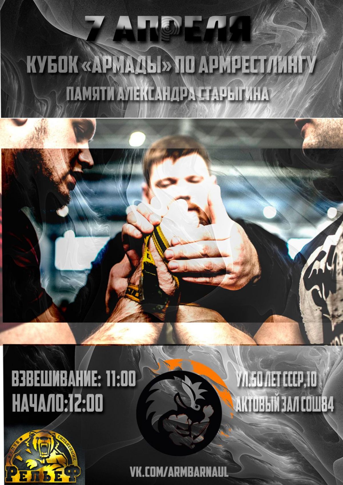В барнаульской «СОШ №84» 7 апреля состоятся открытые межрегиональные соревнования по армрестлингу Кубок «Армады» памяти Александра Старыгина. На турнире ожидается более 50 спортсменов.