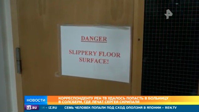 В видео корреспондент канала подходит к закрытой двери, за которой якобы лежит Скрипаль, и указывает на табличку. «„Не входить. Держитесь подальше“. Судя по всему, это единственная защита от того смертельно опасного вещества, которое в Англии называют „Новичок“», – говорит корреспондент Виталий Ханин.