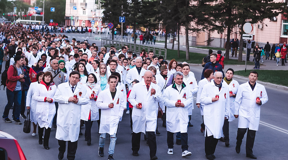 9 мая в Барнауле пройдет шествие «Дорогой милосердия» памяти 85 тысяч медиков, погибших в годы Великой Отечественной войны. Торжественное мероприятие стало традицией Алтайского государственного медицинского университета: вуз организует его седьмой год подряд. Алтайскую инициативу поддержали высшие медицинские учебные заведения Сибири.
