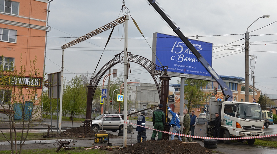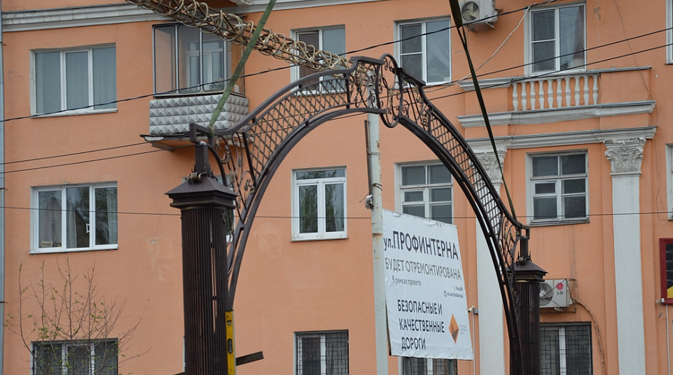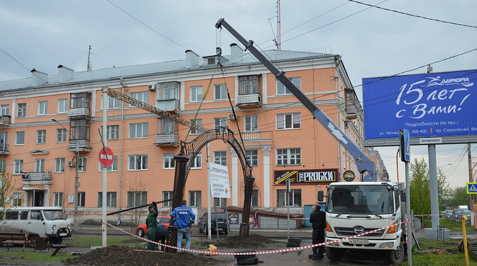 22 мая на аллее по улице Профинтерна со стороны проспекта Калинина установили декоративную арку высотой 4,5 метров и длиной 9 метров.