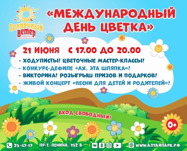 21 июня семейный парк развлечений «Солнечный ветер» (пр-кт Ленина, 152в) проведет праздник к Международному дню цветка.